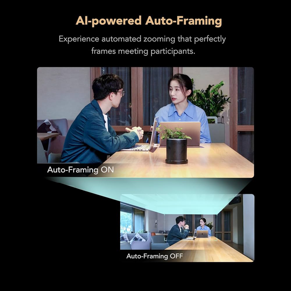 The intelligent AI auto-framing feature is another highlight. Whether you're moving around the room or chatting with friends, the webcam automatically adjusts the frame to keep you perfectly in view, enhancing your video call experience.
