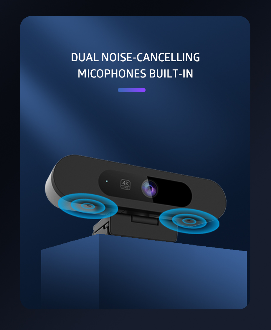 To ensure clear sound transmission, the webcam features built-in dual microphones with a 3-meter voice pickup range, making your voice sound natural and clear.