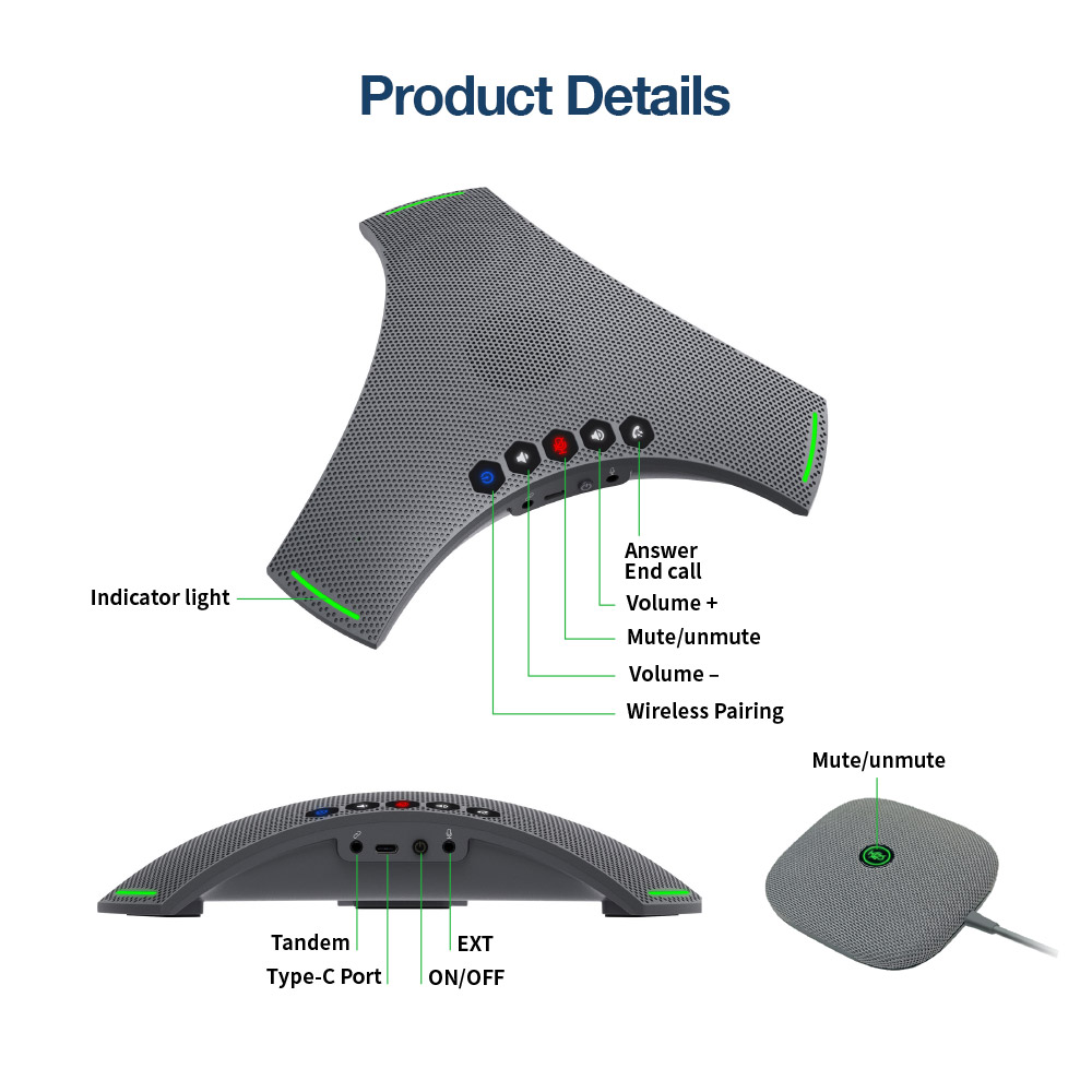• 360° Long-Distance Sound Capture : The product features three built-in microphones, complemented by an extension mic, enabling 360°