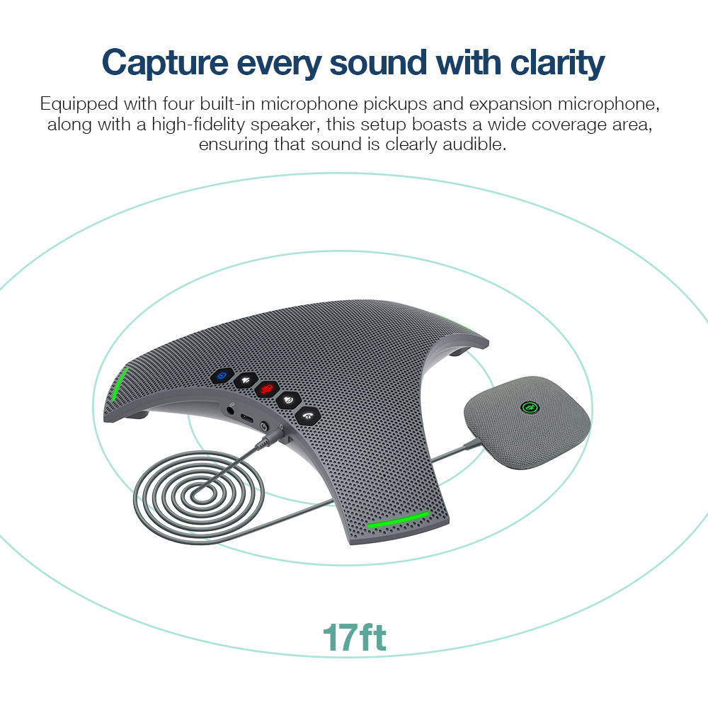 ultra-long-distance sound capture. Ideal for large meeting spaces or group discussions, it ensures every voice is heard with exceptional clarity.