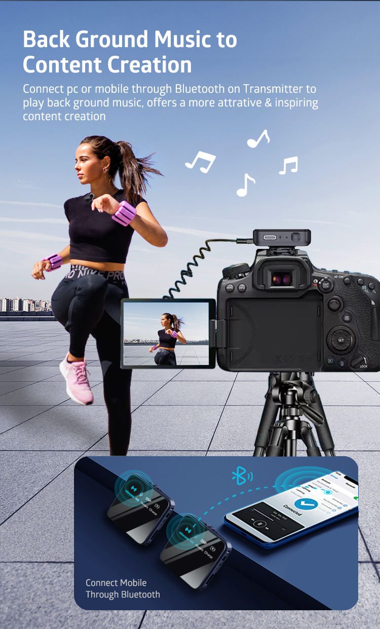 • SDual Channel wireless microphone system for recording two sound sources simultaneously.