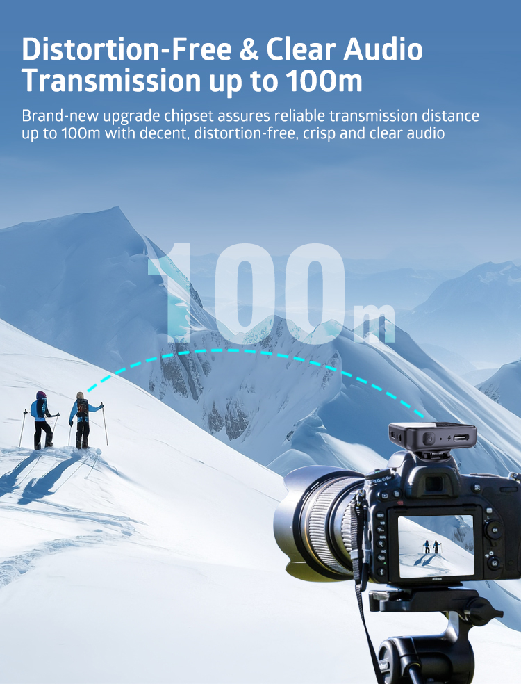 • Adopts 2.4GHz digital transmission with 128-bit encryption delivers a range of up to 100m.