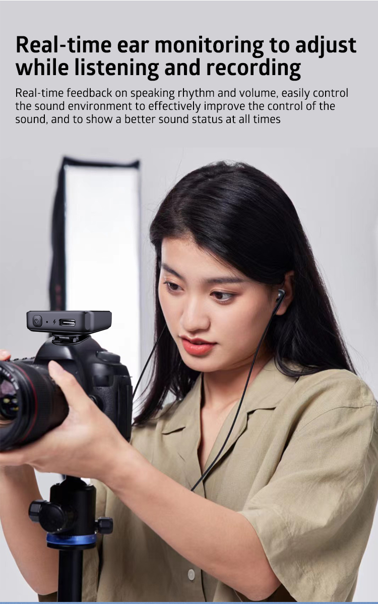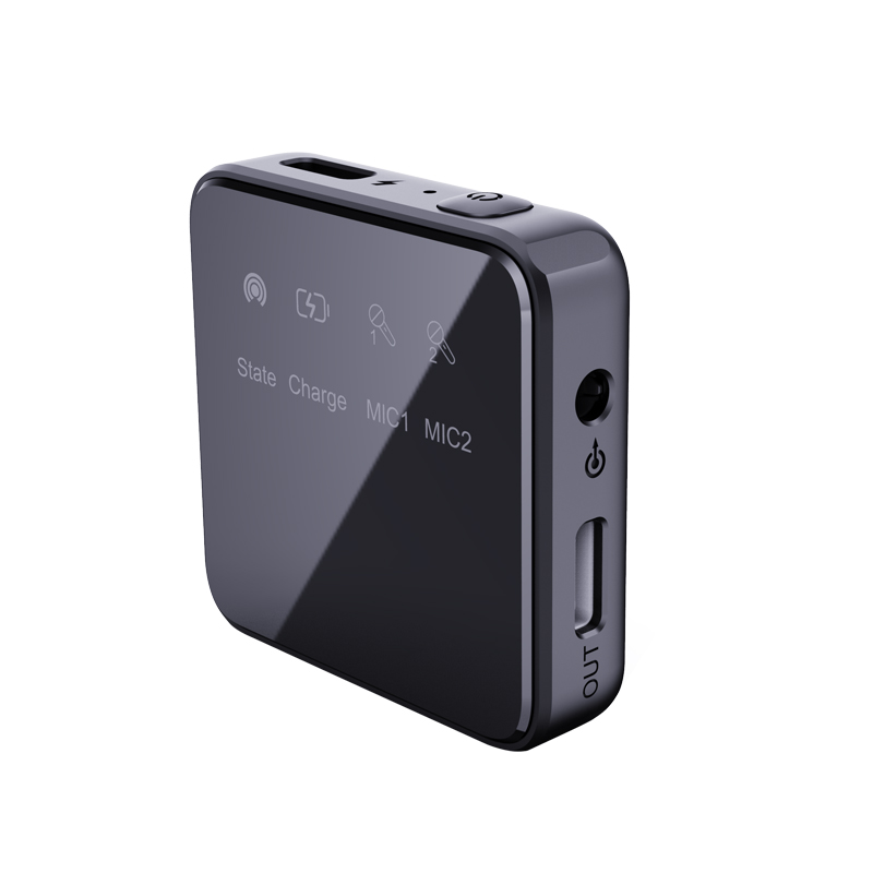 • Each transmitter has in-built omnidirectional condenser mic, plus a 3.5mm TRS input for plugging in a lavalier microphone and usb-c to connect to PC.