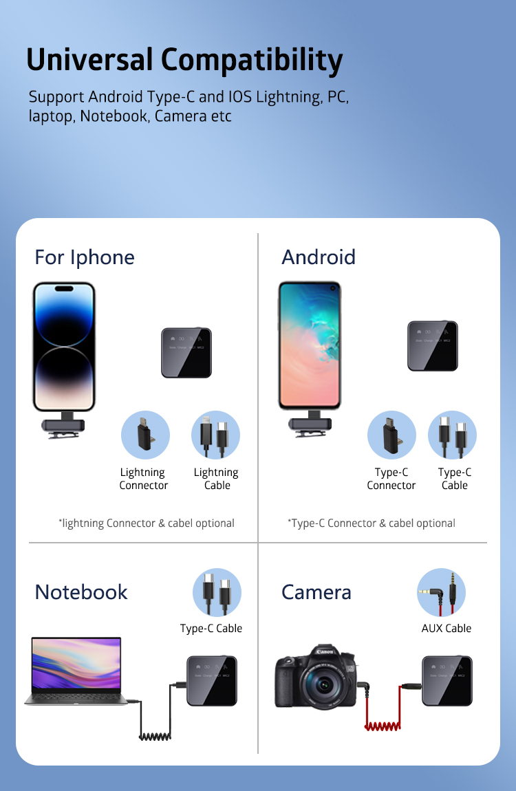 • L7 receiver has a usb-c port and 3.5m TRS output, lighting output, universal compatibility with cameras, mobile devices and computers.